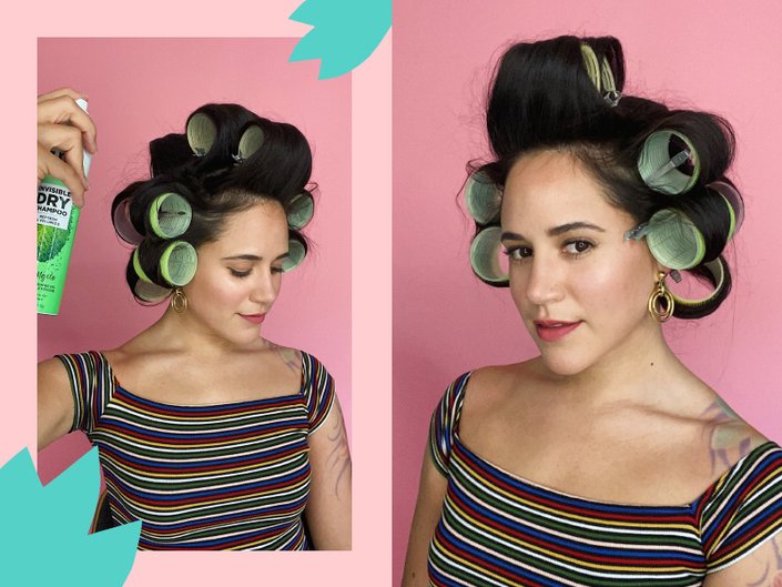 Once your hair is dried and in the rollers, Burnside says to spray the Garnier Fructis Invisible Dry Shampoo at the base and at the root of your hair. This step helps to lock in the style by removing any excess oils, while adding more volume.