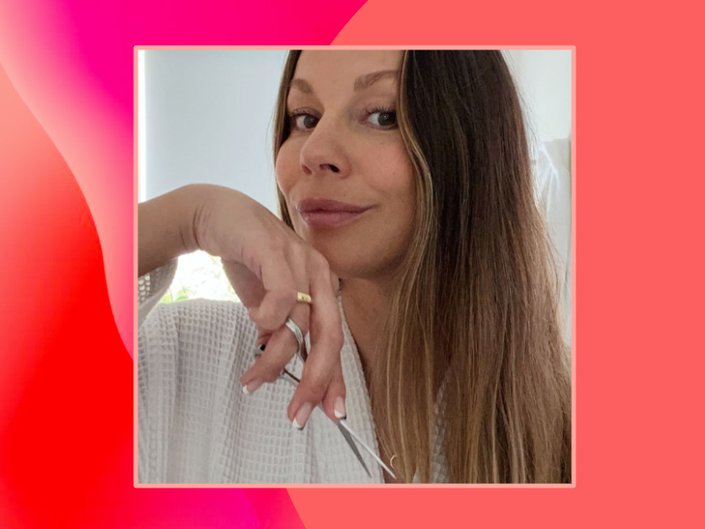 “Wet hair lies!” says Brook in her video. She explains that because hair stretches when it's wet, she prefers to cut on air-dried hair for accuracy and to get a better idea of exactly how much to take off.