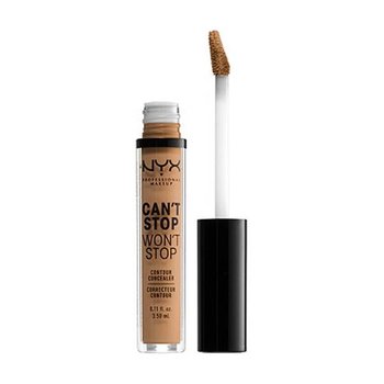 Next, after applying primer and foundation, you want to go in with a powerful concealer to really minimize the appearance of dark circles. The new NYX Professional Makeup Can’t Stop Won’t Stop Concealer is our favorite for this because it’s extremely full coverage, buildable and comes in a variety of shades. (Hack: Choose a slightly lighter tone to really brighten.)
