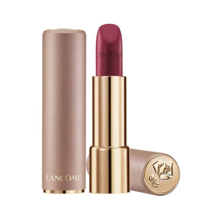 For a final touch of burgundy, apply Lancôme L’Absolu Rouge Intimatte Lipstick in Kind of Sexy all over the lips.