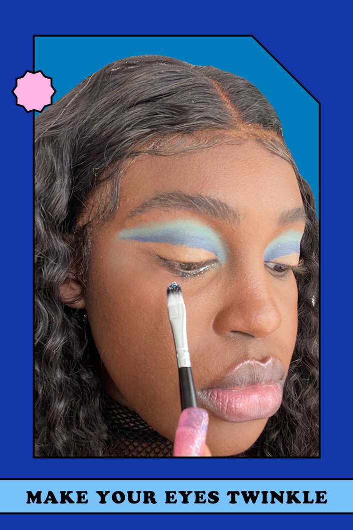 To really make your eyes twinkle, apply a glittery eyeshadow, like the Valentino Beauty Dreamdust Glitter Eyeshadow in Stardust, along your lower waterline from the inner corner to just below your pupil.