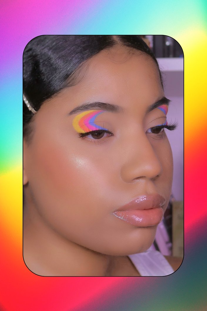 This Curvy Rainbow Eyeliner Look Is Gravity-Defying