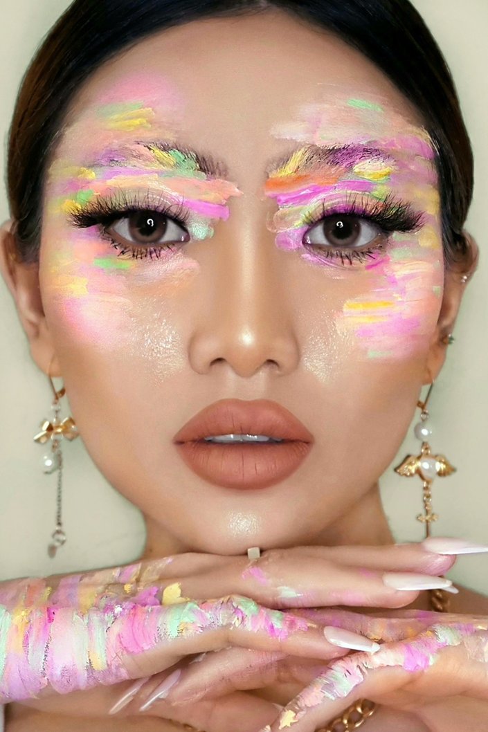 This step is completely optional, but for a fun editorial twist that will look amazing in pictures, add some of the same colors used on your eyes onto your fingers and hands.