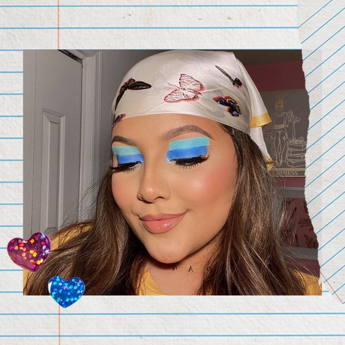 Renée wanted to keep things monochromatic which is why she went with the blue and teal shades from the NYX Professional Makeup Brights Palette. But rest assured, you can choose any two complementary colors that you like.