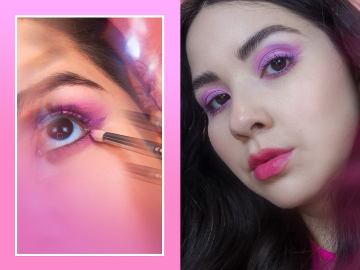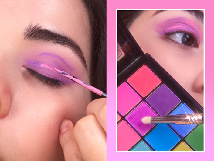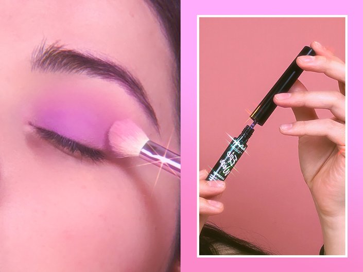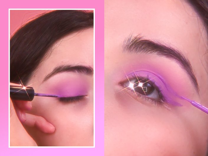 Using the NYX Professional Makeup Ultimate Brights Palette, we started by applying the lilac shade all over the lid into the crease. Be sure to use a few layers of the shadow to build it up to a bright, vibrant purple. (Pro Tip: It helps if you apply a primer underneath, like the Urban Decay Original Primer Potion).