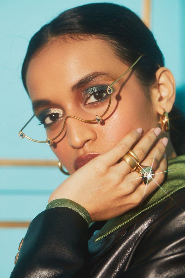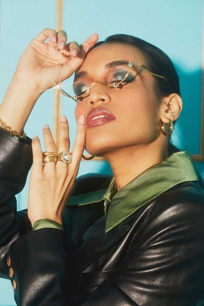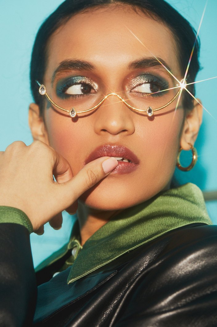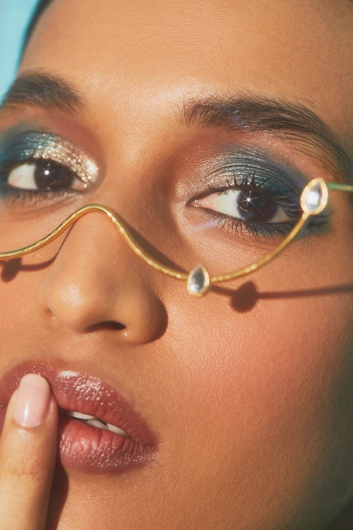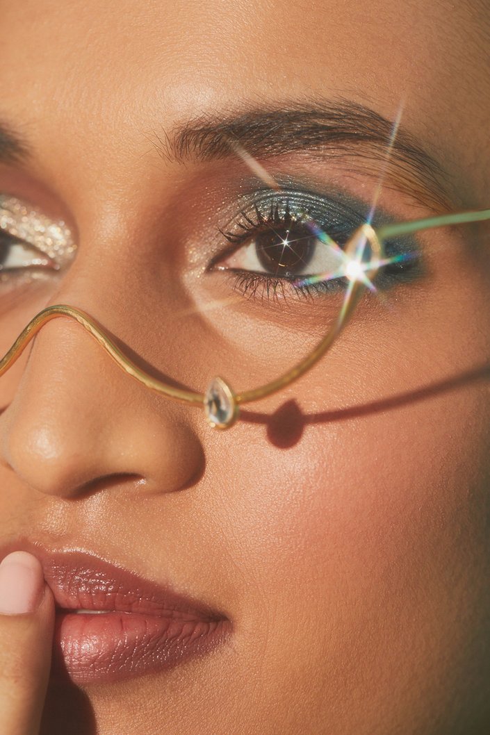 Now for the most exciting part: the glitter. Use the NYX Professional Makeup Diamonds & Ice, Please Shadow Shadow Jelly in a Lister Silver to add a pop of glitter in the inner corner. “Pick it up with a flat shadow brush, place three little dots and blend them all together from the corner, across the lid and up to the crease,” says Williamson. “It gives a nice, diffused glitter look.”