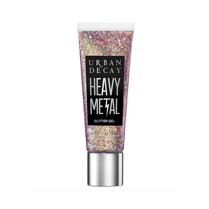 Finish off the eyes by taking a flat eyeshadow brush and applying Urban Decay Heavy Metal Glitter Gel in Saturday Stardust to the center of your lid.