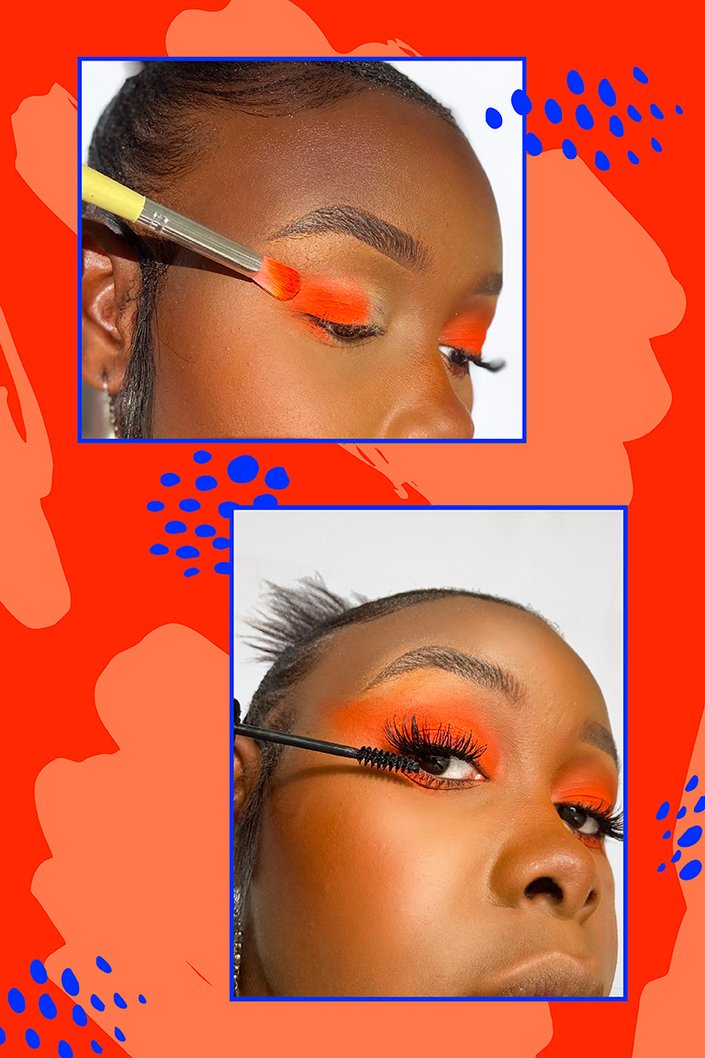 To go bright and bold like Christina, we recommend using Switch, an electric orange shade from the Urban Decay Wired Palette. Pack the color onto the lid and then smoke it out on and above the crease. With the shadow, draw a wing onto the outer corner for a more dramatic effect, and then bring the shade down to the outer half of the lower lash line.